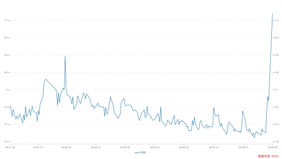 记者梳理发现,今年以来,A股换手率大多保持在3.5%以内。随着近期股市热度不断上涨,成交金额不断扩大,A股的换手率也在上升,9月27日,A股换手率为4.57%,9月30日,A股换手率进一步上升至7.56%。