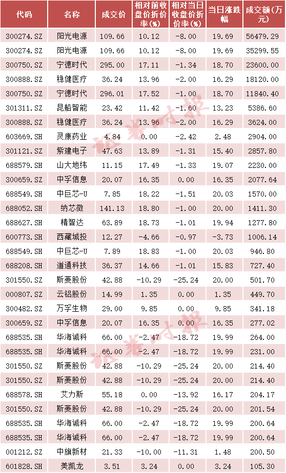 从成交价格来看,机构席位为了抢优质筹码也是不得不“加价”。31笔“买入”操作中,19笔操作相对前一交易日收盘价溢价。其中阳光电源、宁德时代、稳健医疗、精智达、纳芯微、中巨芯-U等个股的成交价均溢价10%以上。