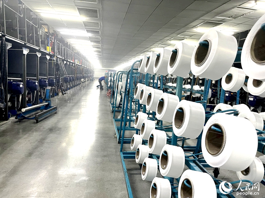 在福建三明鑫森合纤的车间里,陈列着卷绕成型的丝线。人民网记者 陈蓝燕摄