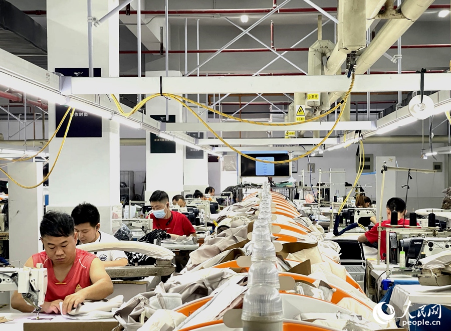 福建七匹狼车间里,生产工人在工作。人民网记者 陈蓝燕摄