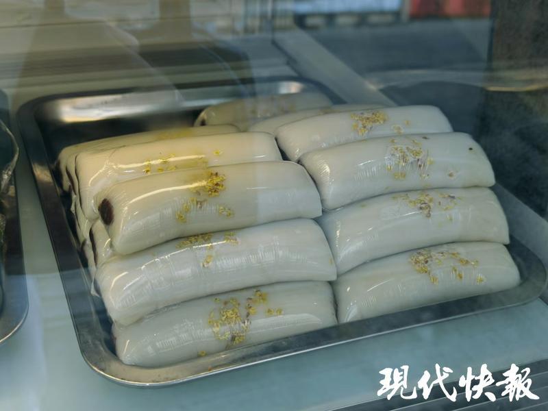 王府大街的芳婆糕团店更是大家必打卡的,“来一碗桂花糖芋苗。”“好的,6元一碗。”桂花糖芋苗是深深烙着南京印记的美食,历史上,在每年中秋节前后,南京城到处飘浮着淡淡的桂花香,这时候也正巧是芋头成熟的季节。手巧的南京人会把屈原楚辞中的诗情“援北方闭兮酌桂浆”融进生活,将桂花与芋头巧妙地结合,制成一道著名的传统甜点——桂花糖芋苗。