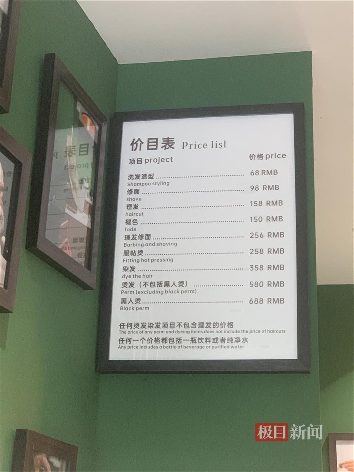 “今年3月,我们开了这家理发馆,店内有3位从业资历超过15年的发型师。”何超介绍,“与主要服务女士的美发店不同,我们只为男士提供理发、剃须、修面等服务,以预约制为主,来的都是熟客。”记者在店内看到,一次男士洗发造型的价格为68元,单次理发是158元,理发修面一起为256元,烫发价格则从258元至688元不等。