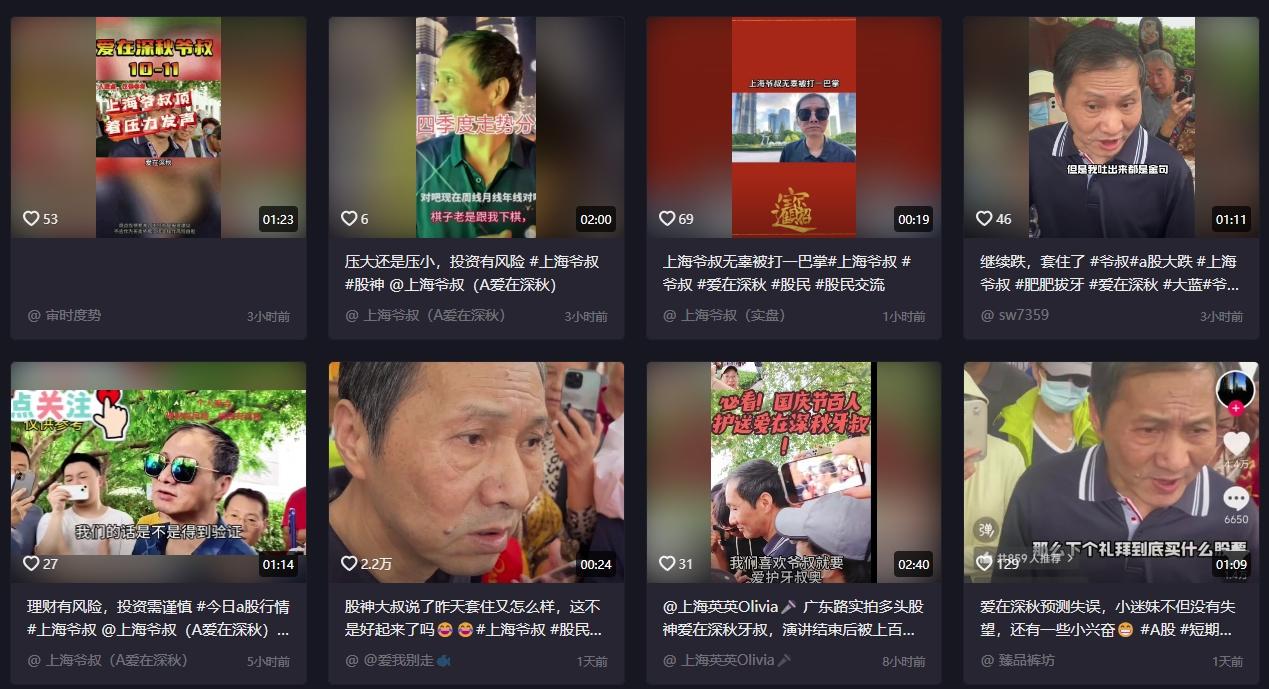 尤其在短视频赛道,涌现出了大批民间“股神”。上海爷叔(爱在深秋)、大蓝都是典型代表。