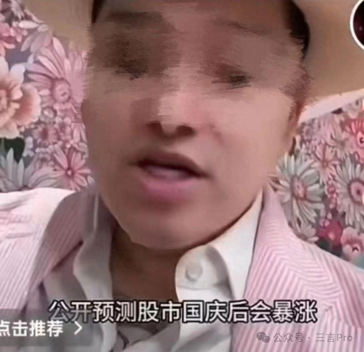 在国庆前后,一位知识类博主“大蓝”,仿佛化身股市预言家,发布了数条充满激情的股市相关作品,其中不乏有“A股大盘公开预测”“新手炒股赚钱买哪只股票”“我是不是真的全仓了”“公开预测8号股票涨跌”“推荐大家炒股,我真的错了吗”等内容。他在视频中不仅斩钉截铁地断言股市节后必爆炸,还大力推荐粉丝卖掉黄金全仓股票,甚至在评论区进行具体个股推荐。
