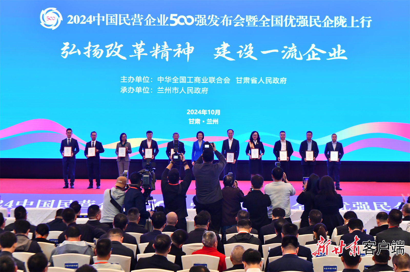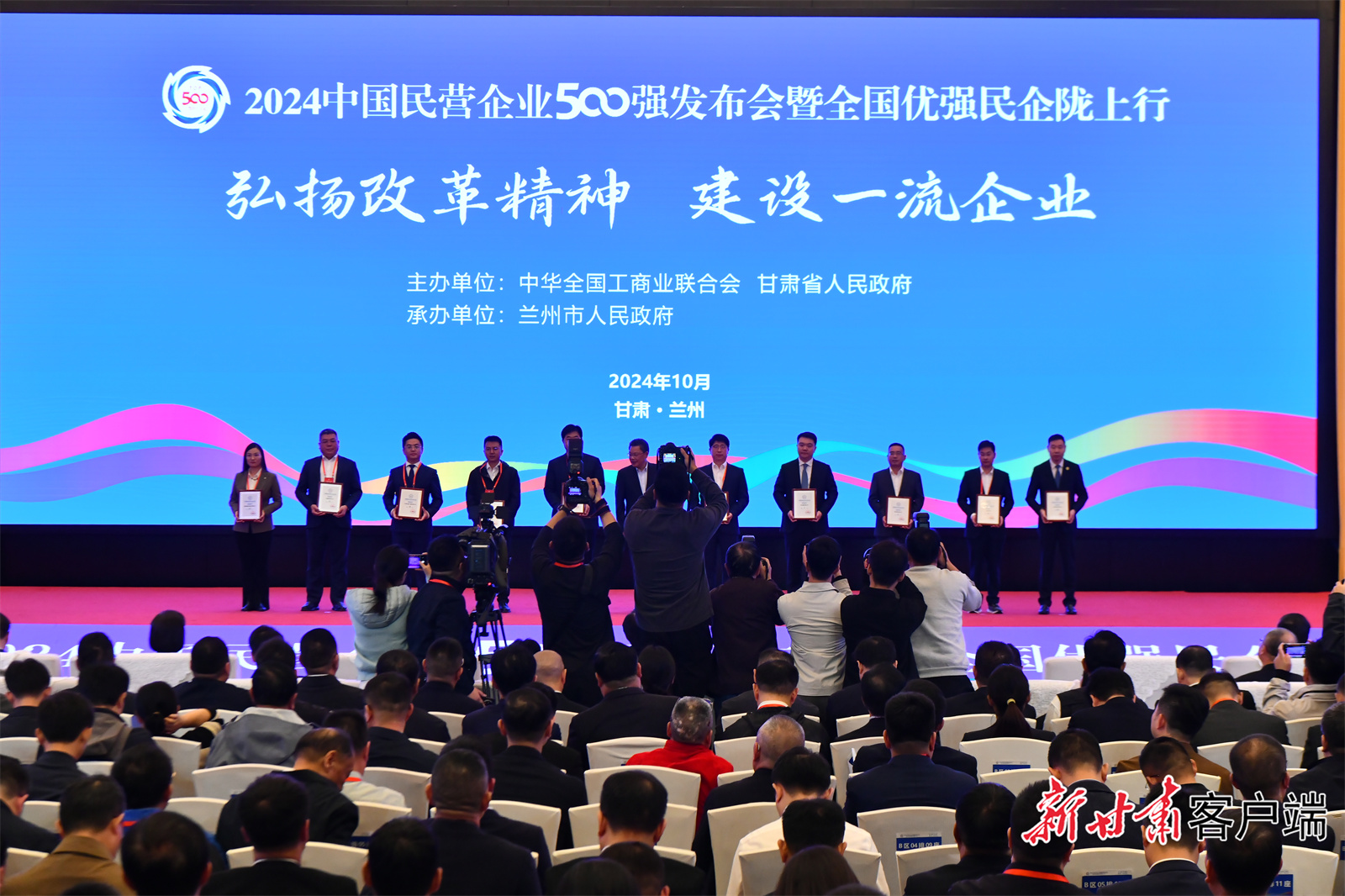 10月12日下午,由中华全国工商业联合会、甘肃省人民政府主办,兰州市人民政府承办的2024中国民营企业500强发布会在兰州举行。