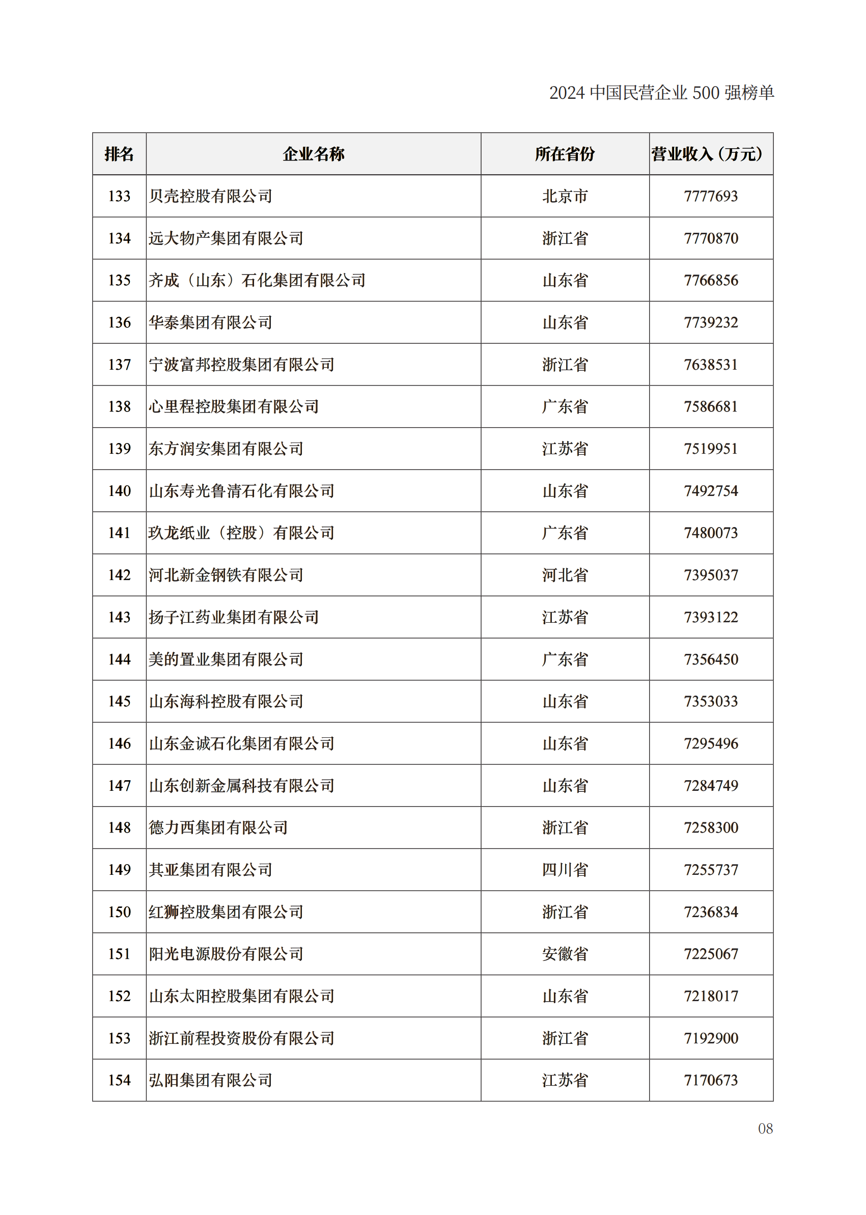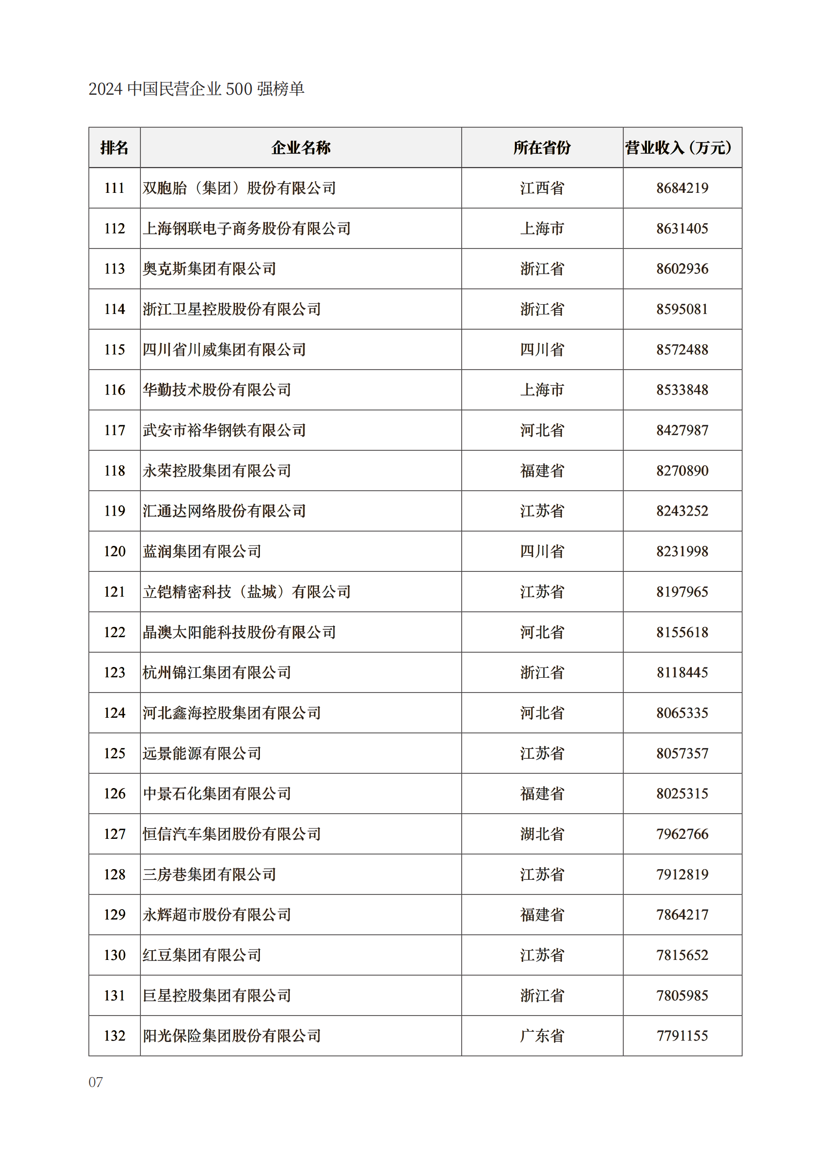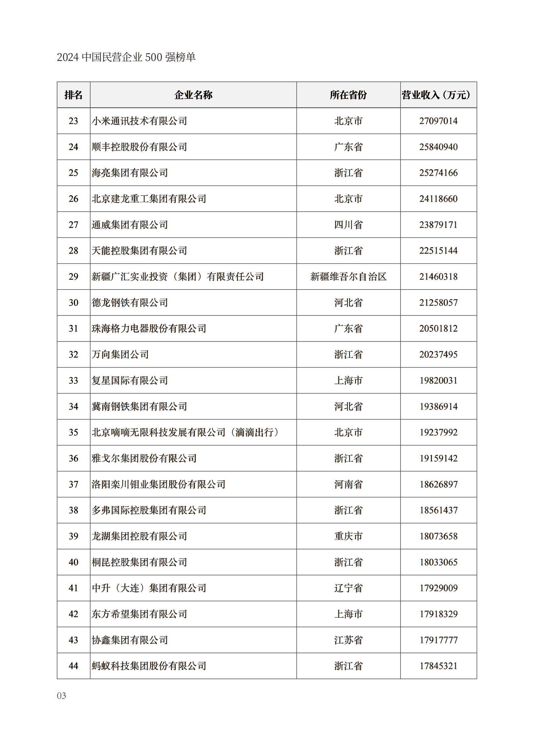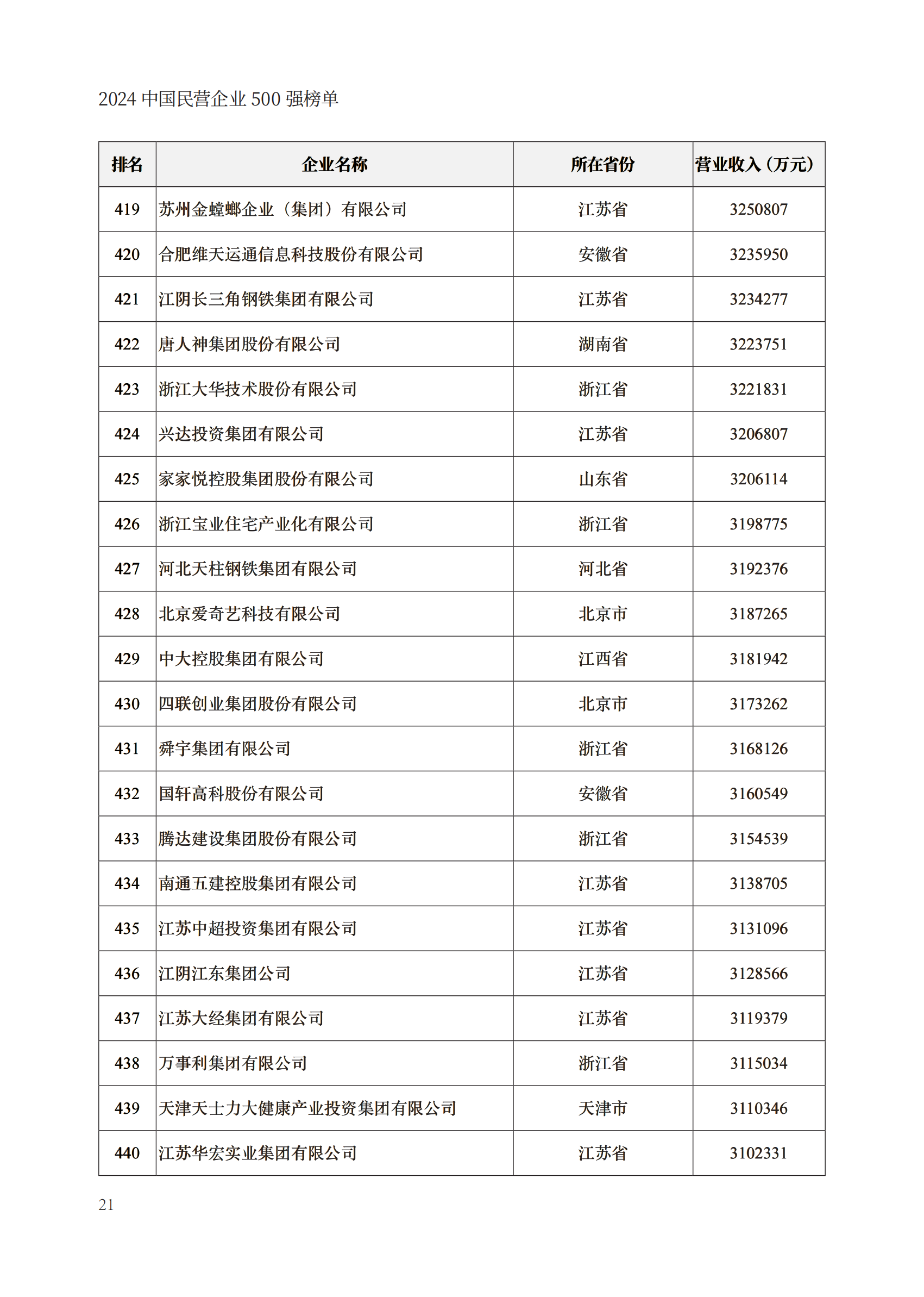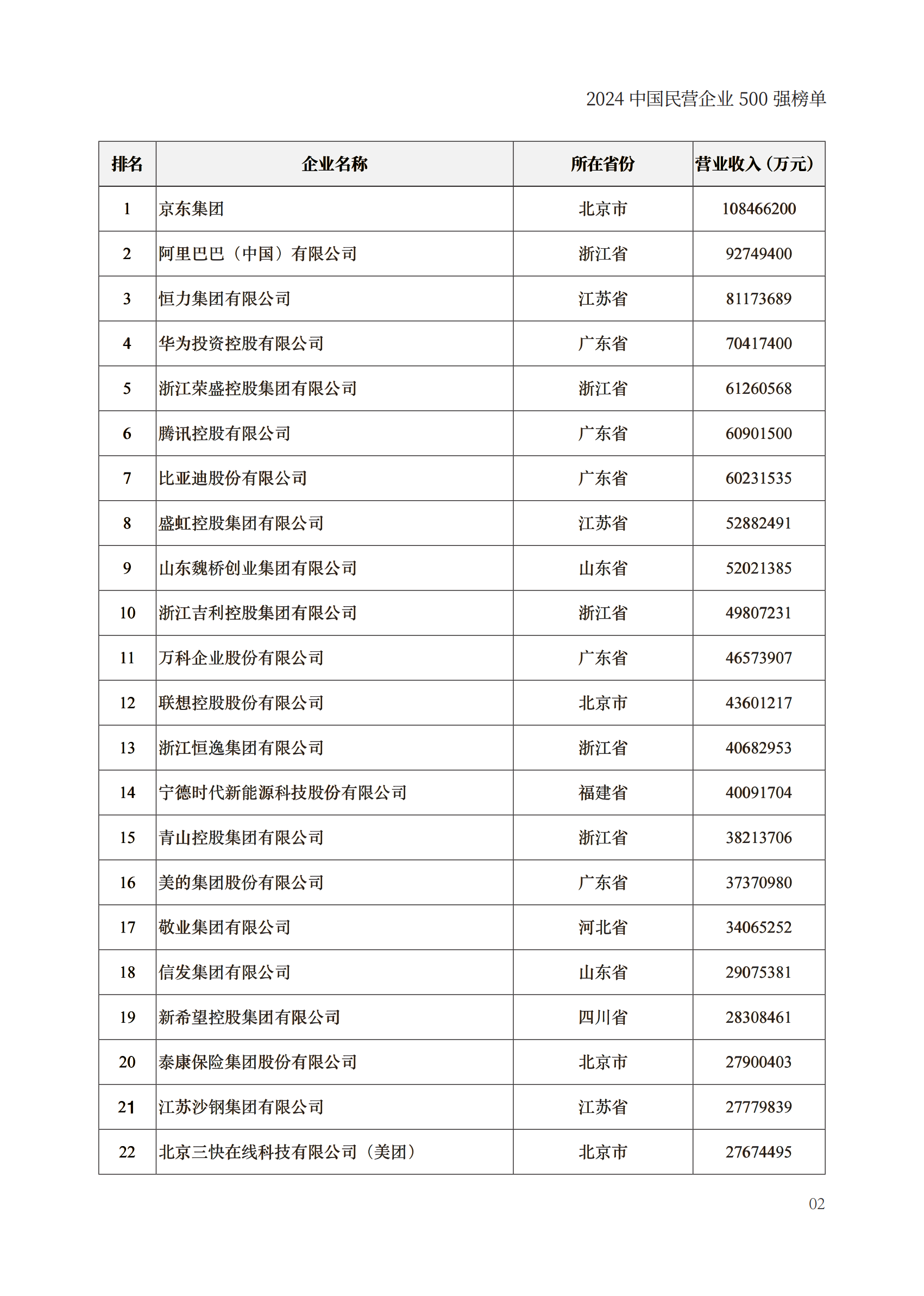 会上发布了“2024中国民营企业500强”“2024中国制造业民营企业500强”“2024中国服务业民营企业100强”榜单。其中,京东集团、阿里巴巴(中国)有限公司、恒力集团有限公司、华为投资控股有限公司、浙江荣盛控股集团有限公司等企业上榜“2024中国民营企业500强”。