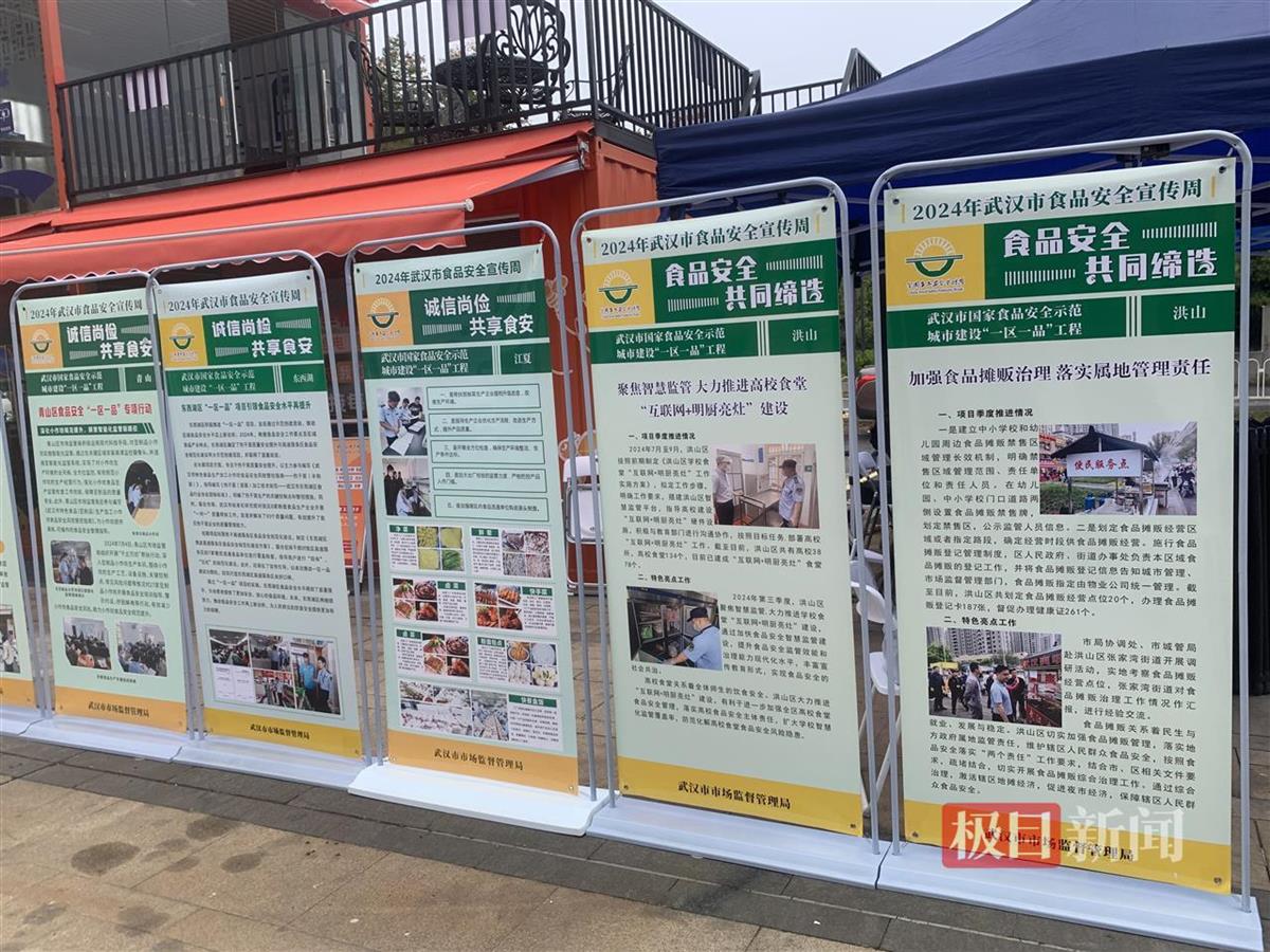活动现场,市、区市场监管相关职能部门设立了宣传台,发放食品安全宣传资料,接受市民食品安全知识咨询;武汉市食品化妆品检验所、武汉市药品不良反应监测中心等单位设置了宣传展板,展示了校园食品安全专项整治、食品安全“一区一品”等工作成果。