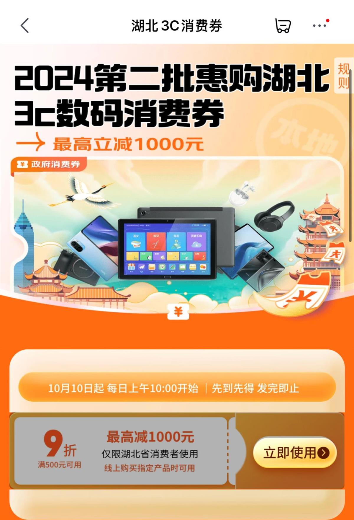 继第二批“惠购湖北”3C数码产品线上消费券在唯品会、京东平台发放后,线下消费券也来了!