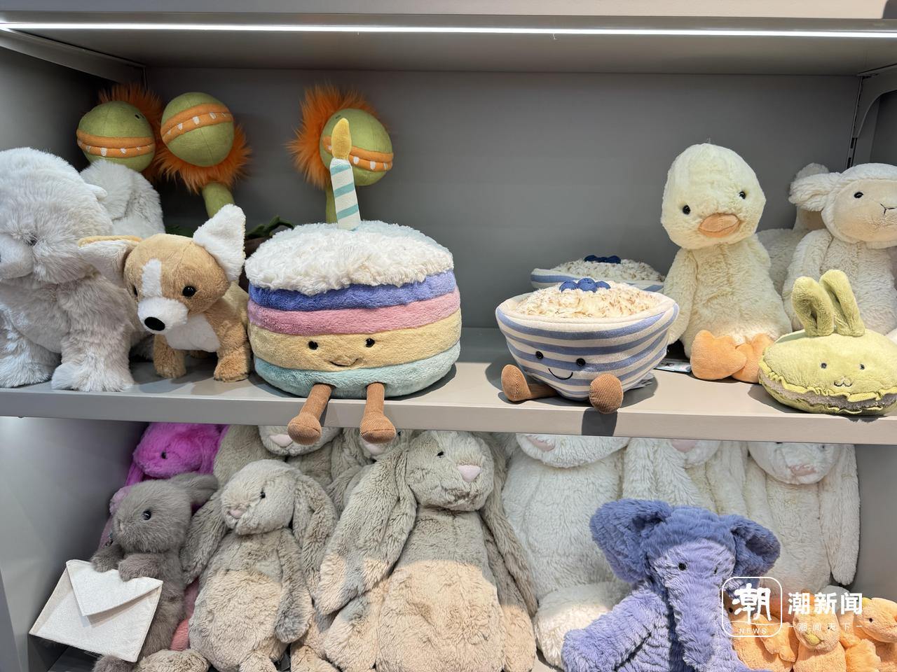 店里逛了一圈,没有发现Jellycat热门款产品。只有一款生日蛋糕玩偶,是最近热度较高的。“今天新到货了5个,已经卖出去2个了。”店员说。