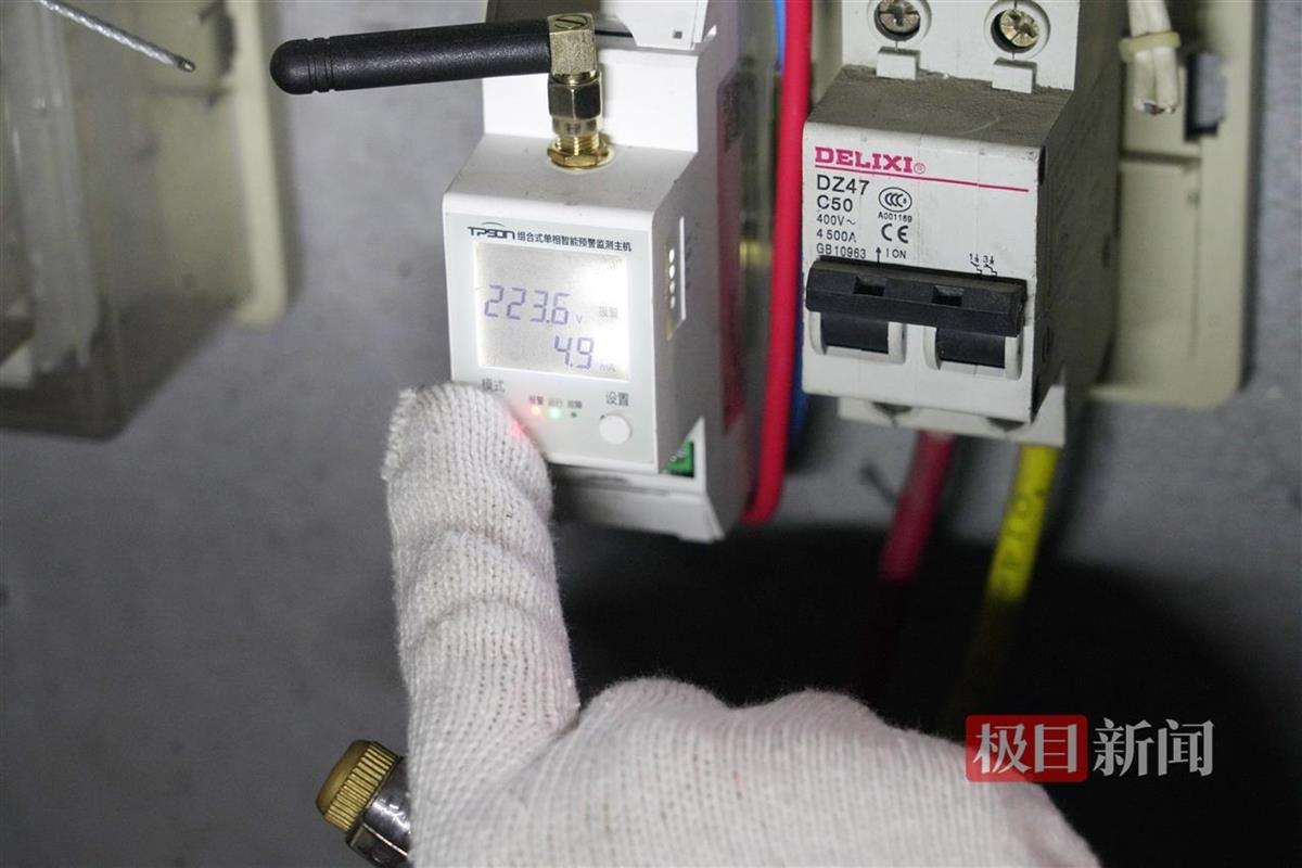 在刘婆婆家所在楼层的电表箱里,记者看到,电表后端加装了一个带显示屏的设备,上面滚动着电流、电压、设备温度等数据信息。
