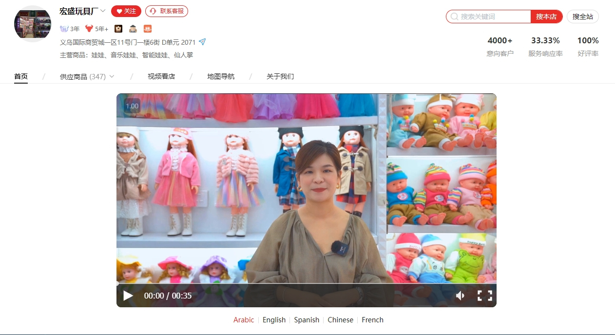 “刚刚就有一名俄罗斯的客户因为看了我的视频找到我,说要下单800多个玩具娃娃,我们正在沟通货期。”孙丽娟颇为自豪地说,去年10月偶然成了义乌市场第一个使用AI数字人技术的老板娘后,这个技术给她带来了很多惊喜。