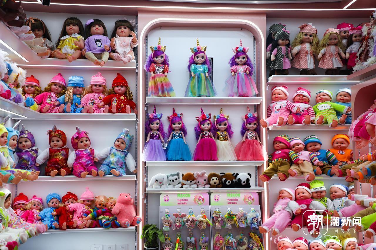 摆放着数百种玩具娃娃的店铺里,一头大波浪卷发的义乌老板娘孙丽娟,正对着镜头微笑录新品视频。