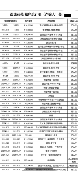 “房东后来联系我,说只收到姜某转的一个月房租。我才知道被她骗了。然后我也加入了维权群,填了‘金额统计表’,出事情到现在,我没有一个晚上睡得好的……”