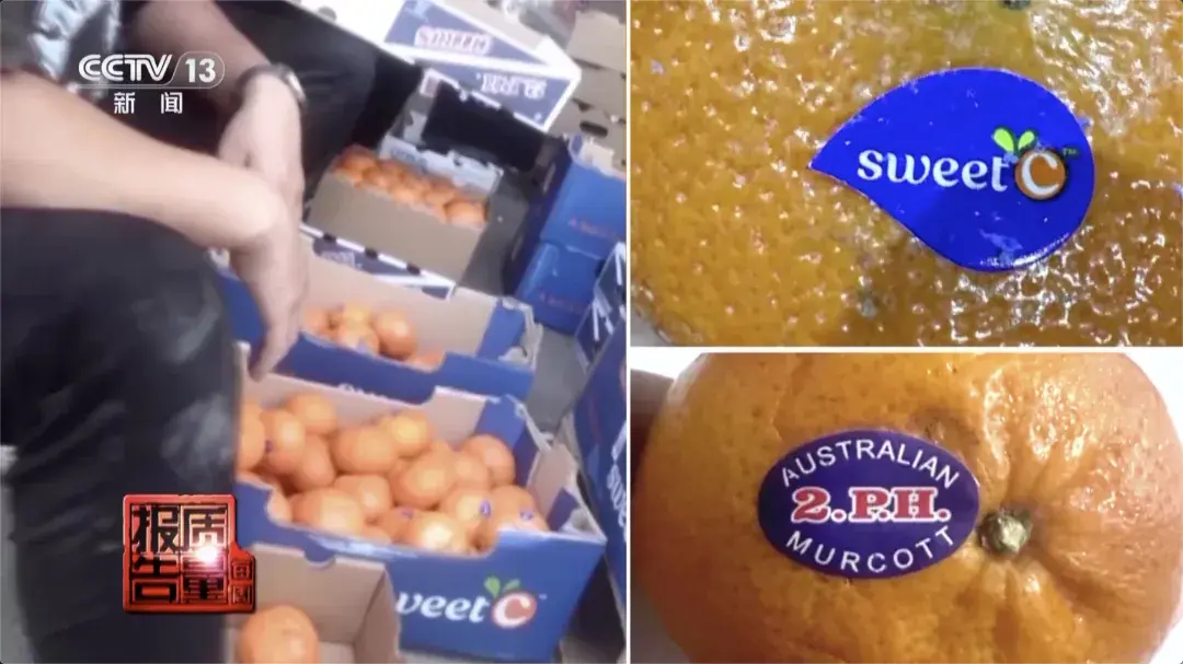 在北京某水果批发市场,记者看到几个工作人员正在对进口橘子进行重新包装。工作人员撕掉了水果上原来贴着的“SweetC”标签,换上了“2PH”“CITRUS”字样的紫色标签。原来,2PH是澳大利亚一种柑橘品牌,业内人士称其为澳柑,而“SweetC”则是南非橘子。