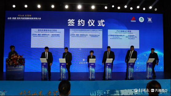 大会现场,高唐县精选了近60家机械装备、造纸、康养食品、新材料等行业的领军企业,通过产品展示、现场洽谈等形式,多家企业与国际采购商达成了合作意向,现场意向成交金额超过5000万美元。此外,活动现场还举行了9个重点外贸合作项目的签约仪式,为双方未来的深度合作奠定了坚实基础。