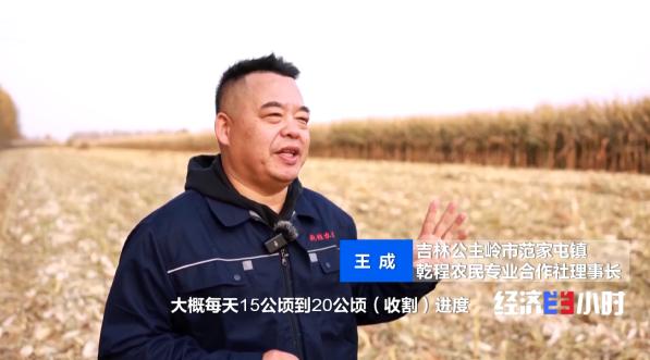 这两年,王成把自家的收割机进行了升级换代。以前收割机只能收玉米棒,升级后,这款收割机能自动将玉米棒脱粒,剩下的玉米芯在机器里直接粉碎,跟随秸秆还田。