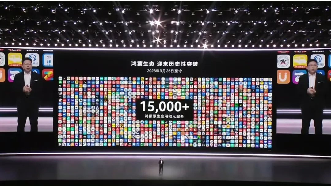 “我们用短短的一年时间,开辟了一片新天地,走过了国外操作系统十几年生态发展的道路。今天,鸿蒙生态迎来了历史性突破!”余承东表示,2023年9月25日至今,已经有超1.5万个鸿蒙原生应用和元服务上线,是4个月前华为开发者大会(HDC)上鸿蒙原生应用和元服务数量的10倍。