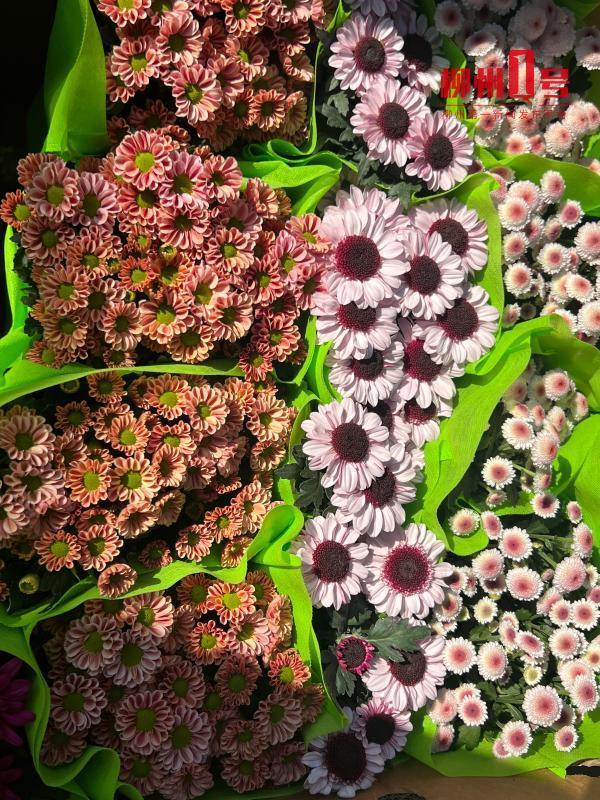 在南方花鸟市场,菊花占据秋季花卉的“C”位。许多花店将新鲜到货的菊花摆在最显眼位置,市民可以看到千头菊、乒乓菊、太阳菊、小李菊等各种各样的菊花争奇斗艳。商铺店家李女士介绍,入秋后菊花逐渐进入销售旺季,花卉价格为10元至30元不等。