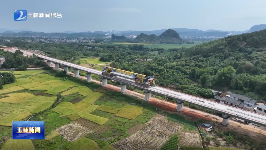 南珠高铁玉岑段项目为在建南珠高铁南玉段的延伸。设计时速为350公里,线路全长111公里,建设工期42个月。由中铁二局新运公司负责承建的南珠高铁玉岑段一标线路全长21公里,共有521孔箱梁。自2023年11月16日首孔箱梁架设以来,项目团队提前谋划、不等不靠、统筹兼顾,合理配置人力物力,通过与外部单位积极沟通,不断优化施工方案,克服了架梁不连续、运距远,架桥机调头频繁,天气炎热施工时间受限等困难,精心落实施工节点各项管理要求,确保运架梁900T一体机安全运行。截至目前,项目累计完成箱梁预制265孔,架设215孔,架梁完成率41%,各项施工生产任务正在快速推进中。