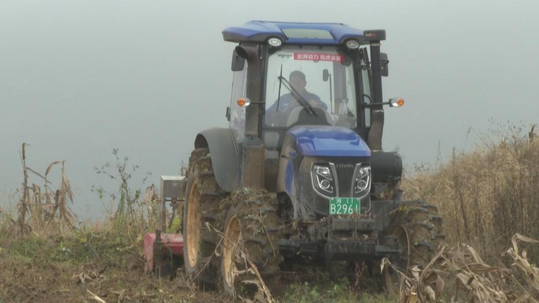 在梭罗村的另一个油菜种植基地,三台油菜播种机穿梭在田地里,旋耕、开沟、播种、施肥多道工序一次性完成,原本平整的土地立即变成一垄一垄的油菜田。