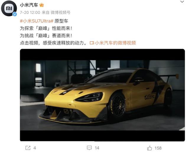 此外,雷军还在微博中表示,小米SU7 Ultra量产版也将在10月29日发布。据悉,小米SU7 Ultra是小米汽车推出的一款高性能纯电动车型。此前,小米曾发布了小米SU7 Ultra原型车。