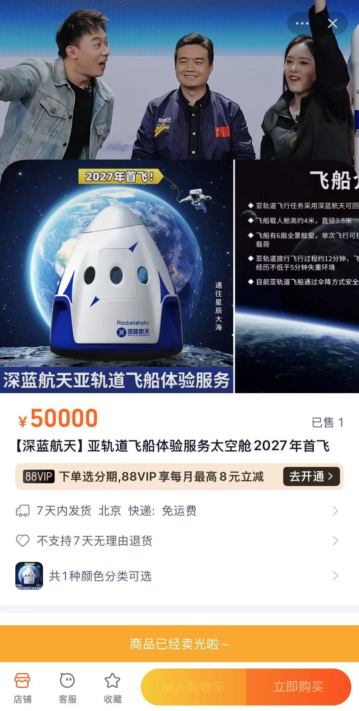 这是国内首次通过线上平台销售太空旅行票,中国商业航天载人飞行或将迈入大众时代。