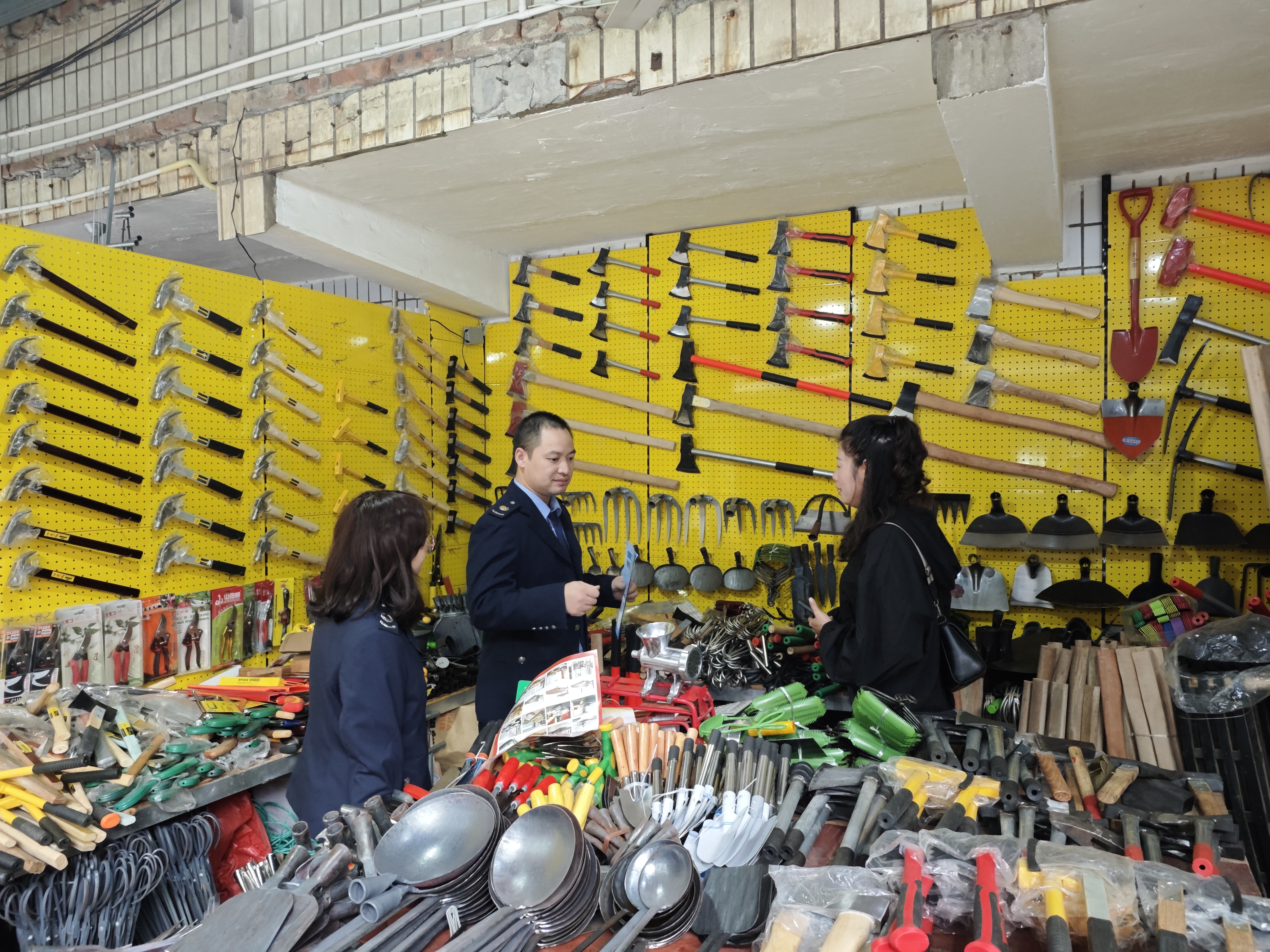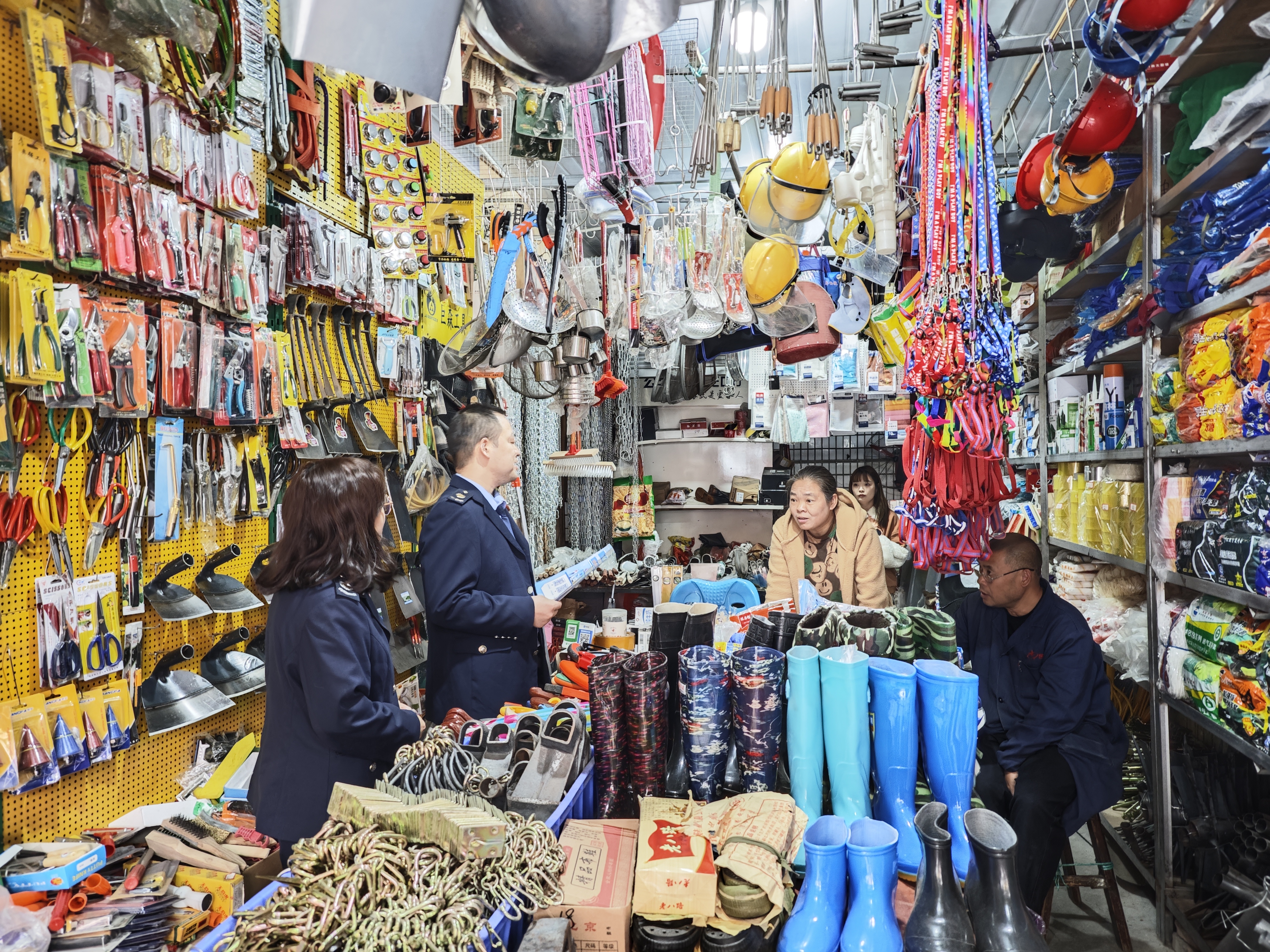 大足区税务局工作人员在龙水五金市场宣传相关政策。受访者供图
