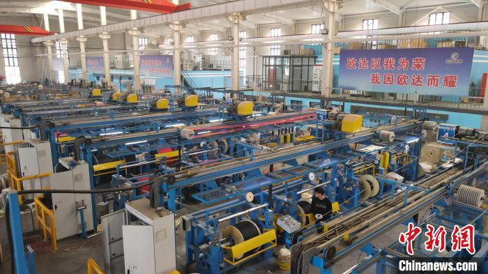 图为10月24日,宁晋县贾家口镇一家电线电缆企业,工人正在操作生产设备。朱丽娜摄