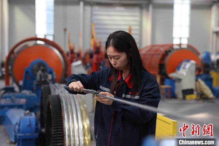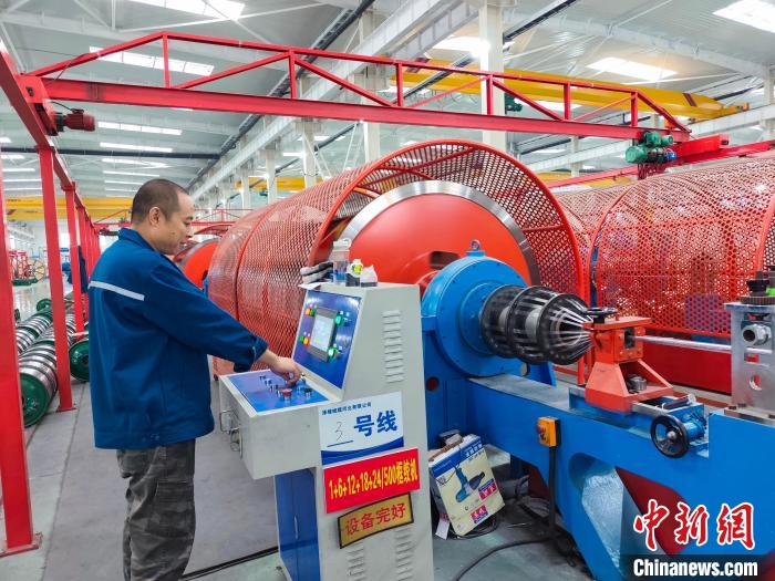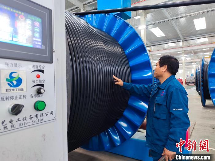 图为10月24日,宁晋县贾家口镇一家电线电缆企业,工人正在查看排线情况。朱丽娜摄