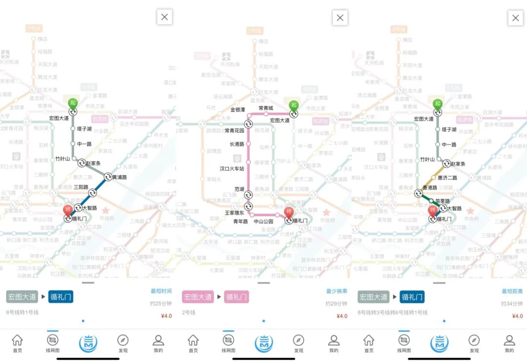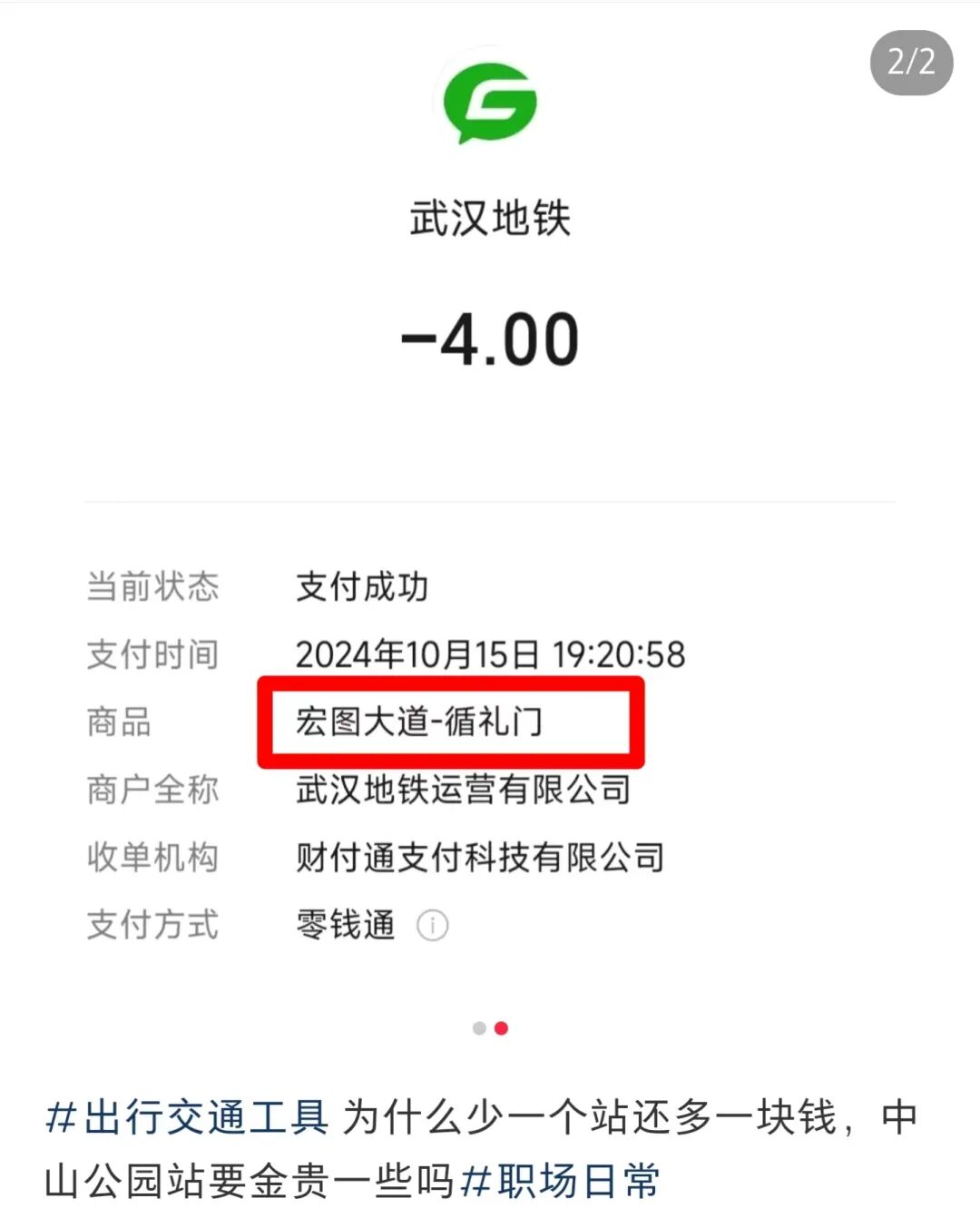 这是怎么回事? 难道地铁算错了 不是坐的站数越多收费越多吗? 如果不是 又或者按两站之间的直线距离? .... NO NO NO 准确来说全国大部分地铁 都是「按里程计价」 什么是里程?里程又是如何计算? 今天地铁知乎一起盘一下 地铁计价的逻辑 武汉地铁计价方式为按里程分段计价。 4公里以内(含4公里)2元;4-12公里(含12公里),1元/4公里;12-24公里(含24公里),1元/6公里;24-40公里(含40公里),1元/8公里;40-50公里(含50公里),1元/10公里;50公里以上,1元/20公里。 *武汉地铁集团官方网站已公示计价标准和站间距详细数据(网站主页-地铁运营-票务规定),乘客可根据需要进行查看。 01 什么是“按里程计价”? “按里程计价”是根据乘客进站站点和出站站点之间乘坐的距离计算票价,而非站点的个数。 同时,计算距离时也不是按地图APP上两站地理位置之间的公里数,而是由地铁票务系统根据进站站点和出站站点之间轨道的距离,算出的最短乘车站间距,从而得出票价。 截至2024年10月,武汉地铁的最高票价为12元,最多可乘坐91.1公里(7号线黄陂广场至16号线通航机场)。 02 票价系统是怎样计算的? 根据最短距离乘车路径(上图右侧路线),在武汉地铁集团官网搜索票务规定,查询站间距。 我们能算出宏图大道站至中山公园站的最短站间距为12.63公里,再对照按里程计价标准,票价为5元。 同理,当我们把终点站换成循礼门站,APP从最短时间、最少换乘和最短距离三个角度,给出3个不同的乘车方案(循礼门为换乘站): 同样的,根据最短距离乘车路径(上图右侧路线),宏图大道站至循礼门站的最短站间距为11.09公里,再对照按里程计价标准,票价为4元。对比一下: ●2号线宏图大道至中山公园 9站 最短站间距 12.63公里 5元 ● 2号线宏图大道至循礼门 10站 最短站间距 11.09公里 4元 同时,从上图也能看到,最短距离的乘车路径不一定是耗费最少时间的,也不一定是最方便的。 我们日常坐地铁时,大部分也会选择换乘次数最少的乘车路径。 本例中,也就是2号线不换乘直达目的地,所以给人留下“多坐了一站,票价反而低1元”的印象。 所以,即使大家的乘车路径绕了远,地铁也会按最短站间距收费。 03 其他车站有这样的情况吗? 答案是有的。例如从6号线六渡桥至4号线首义路(7站),票价4元,6号线六渡桥至4号线武昌火车站(8站),票价3元。 随着武汉地铁线网越来越完善,换乘站数量逐步增加,乘车路径也越来越丰富,计价使用的最短路径可能和大众选择的常规乘车路径不同。 最后,再次提示大家,地铁计价是按乘坐的里程距离,而非按站点个数哦!