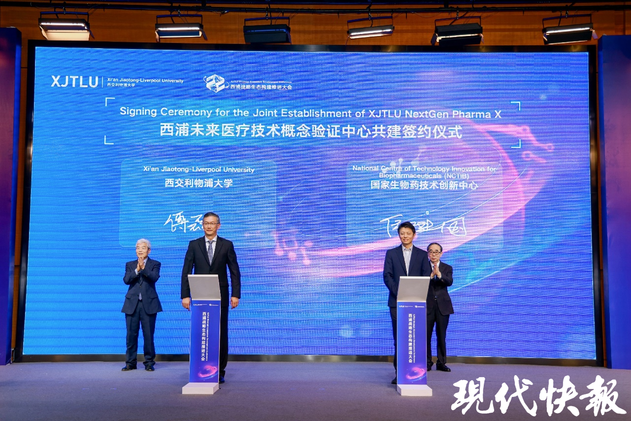 在“2+2+1”战略合作仪式环节,西浦慧湖药学院与国家生物药技术创新中心举行了西浦未来医疗技术概念验证中心共建仪式。该中心由双方共建,是国内首个专门用于验证前沿医疗新技术商业化潜能、产品或服务概念可行性的设施和机构平台。