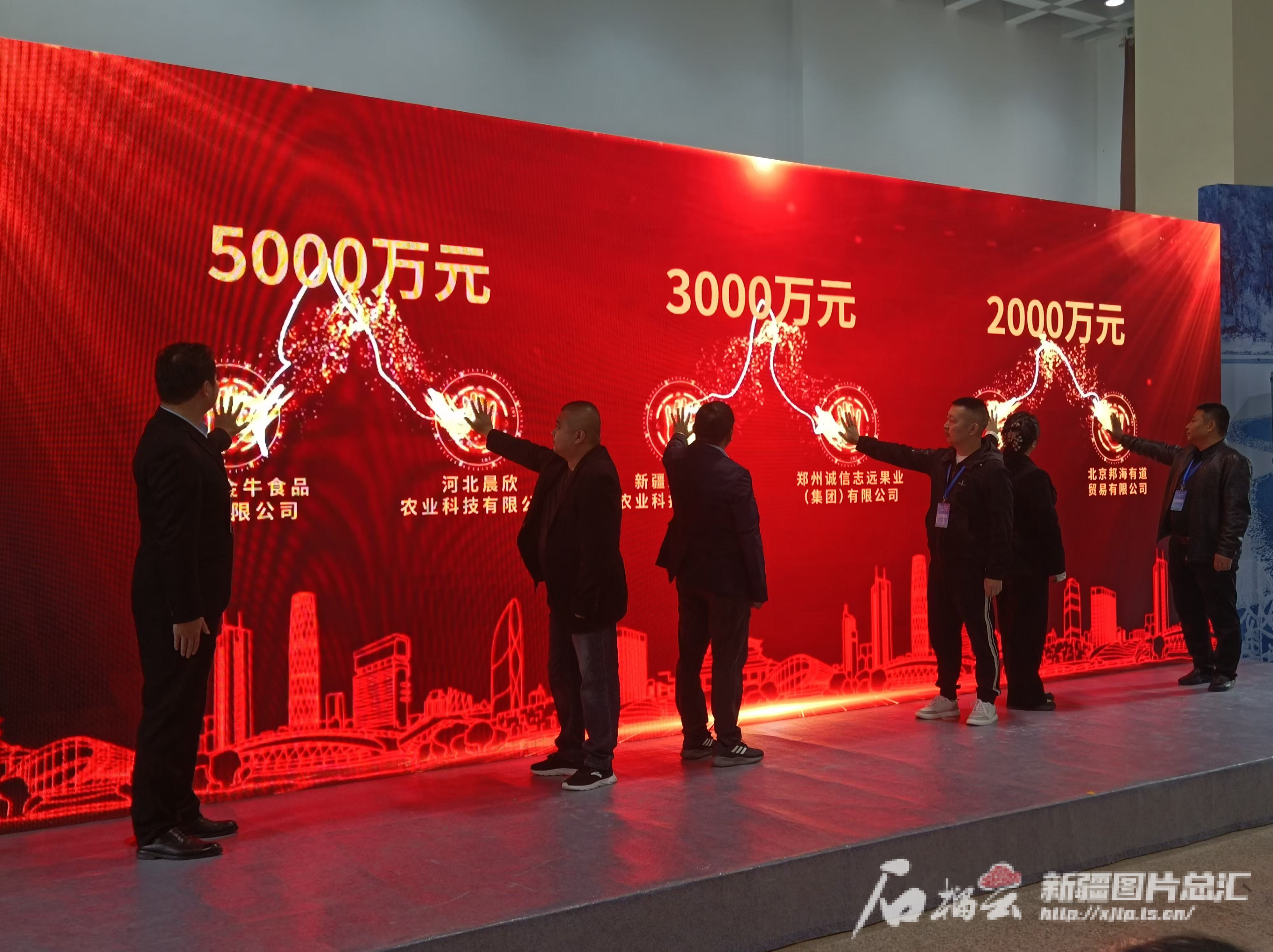 10月26日,新疆小金牛食品股份有限公司与河北晨欣农业科技有限公司等企业代表在电子屏上进行签约。天山网-新疆日报记者冉虎摄