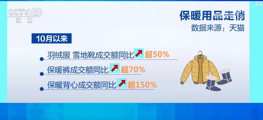 平台数据显示,10月以来,保暖服饰消费表现强劲。其中羽绒服、雪地靴成交额同比增长超50%。保暖裤成交额同比增长超70%,保暖背心成交额同比增长超150%。