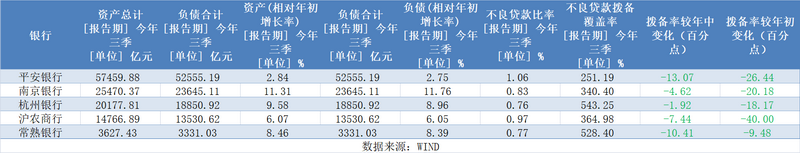从扩表速度来看,今年前三季度各家银行资产规模继续保持增长,节奏较上半年有快有慢。南京银行、杭州银行、沪农商行3家银行资产增速较年中提升,平安银行、常熟银行资产增速较年中略降。