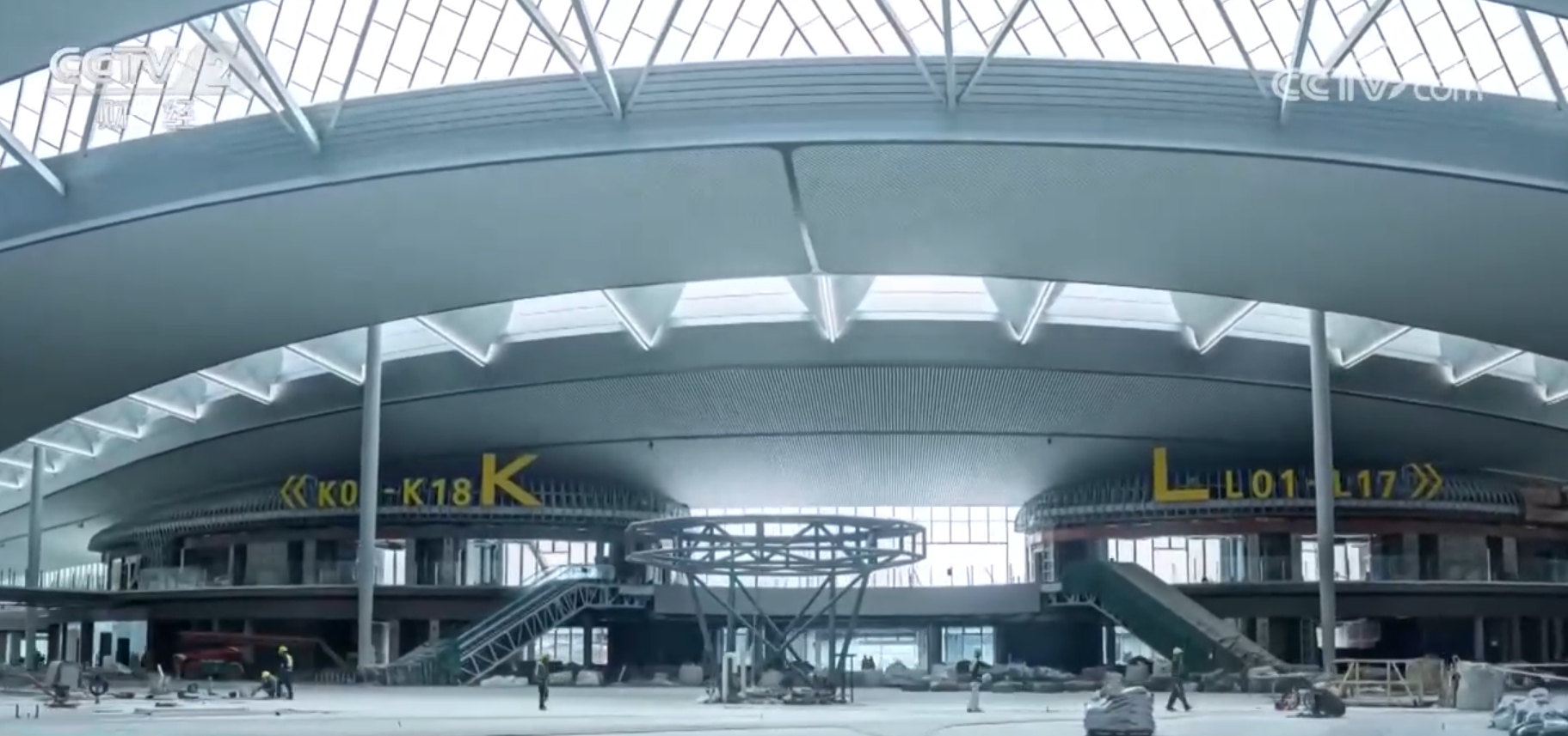 记者来到了重庆江北国际机场扩建工程T3B航站楼的施工现场。这座大型的卫星厅航站楼是重庆市“十四五”重点建设项目,单体建筑面积达到36万平方米,足足有71个登机口,目前项目建设正在进入最后的冲刺阶段,在现场可以看到,旅客区装饰工程现已基本完工,项目预计到年底就将达到竣工验收条件。