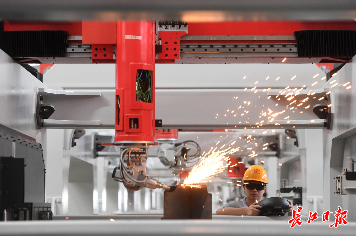 位于武汉新城的华工科技智能装备产业园(葛店园区),技术人员正在对设备调试。记者周超 摄