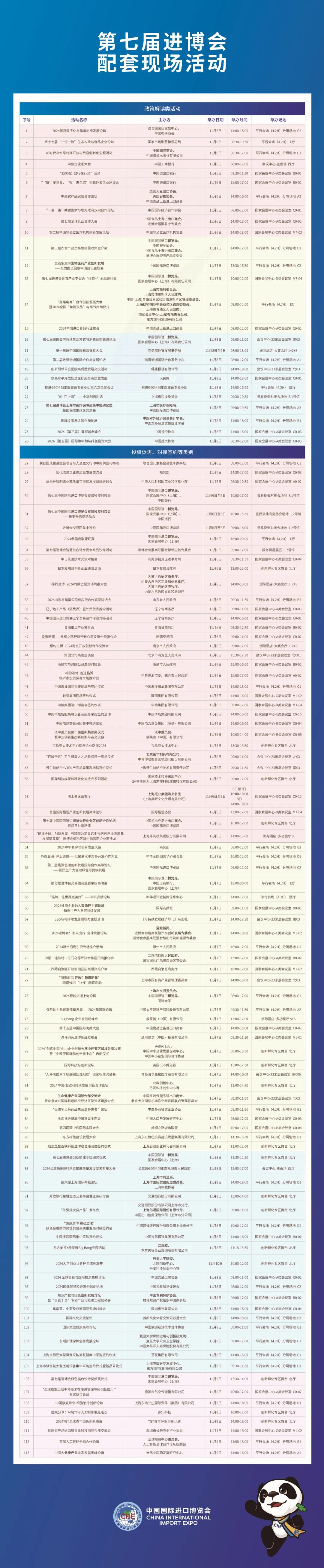 还有5天,举世瞩目的第七届中国国际进口博览会即将迎来五洲宾客。11月5日至10日会期6天,国家展、企业展、虹桥论坛、专业配套活动和人文交流展演等各板块将有720场活动轮番登场。第七届进博会全量集中发布会期馆内活动一览,您可在进博会官网首页、官方微信号菜单栏、进博会官方APP点击“会期活动一览”等相关图标,一键直达、了解详情。同时,还可根据时间、地点、展区、活动类别等多维度实现精确筛选。移动端注册用户还可实现活动地点导航、加入日程等功能,快来试试吧!