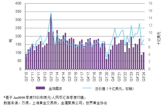 中国市场金饰季度需求及总金额。图源:世界黄金协会