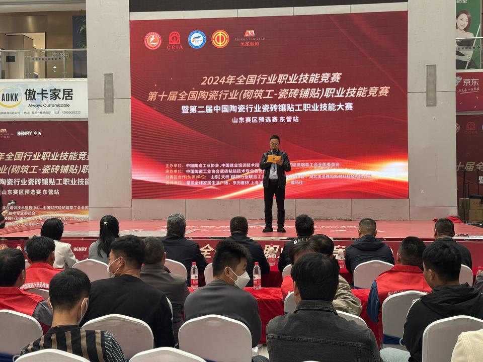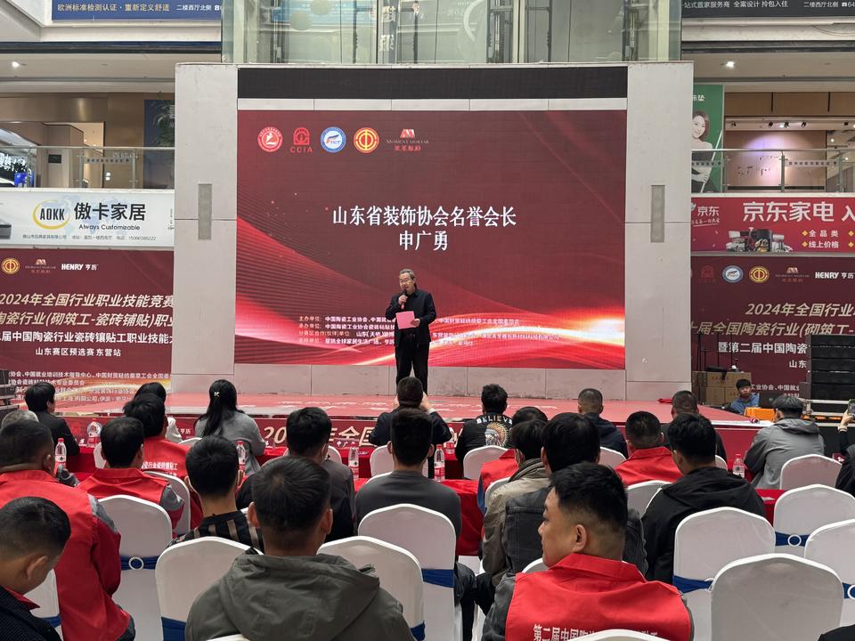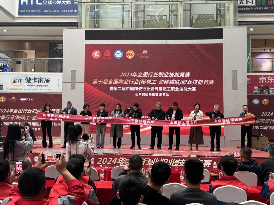 10月30日,2024年全国行业职业技能竞赛——第十届全国陶瓷行业(砌筑工-瓷砖铺贴)职业技能竞赛暨第二届中国陶瓷行业瓷砖镶贴工山东赛区预选赛-东营站比赛在星凯家居广场拉开帷幕。