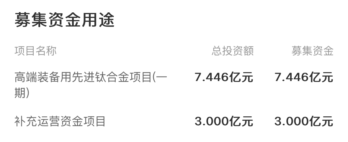 △金天钛业募集资金额及用途