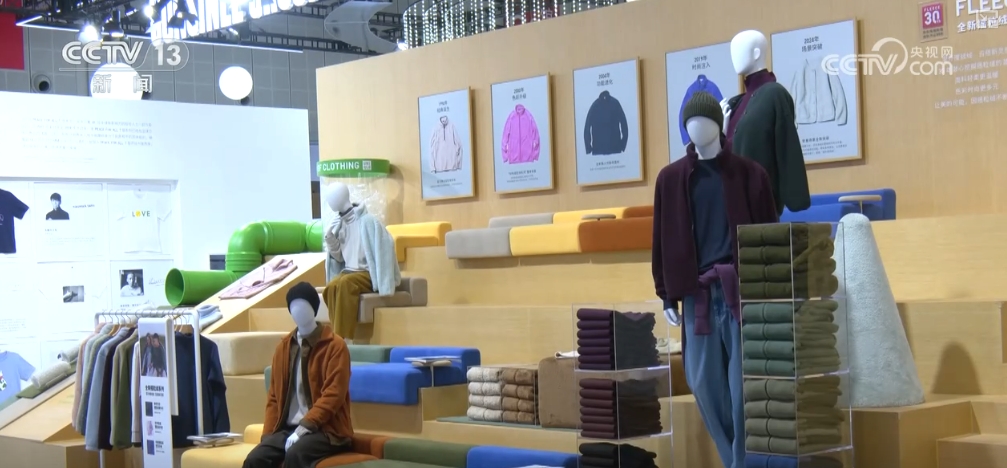 不只是生产制造更智慧,越来越多高科技正走入我们的日常生活。这家外资服饰零售企业2024年带来了多款“科技服装”。这件“空气棉服”,采用全新研发的高机能3D极细中空纤维技术,“智慧纤维”的面料大大提升了锁温效果。这款专为中国市场打造的羽绒服首次亮相进博,能够抵御零下35摄氏度的严寒。