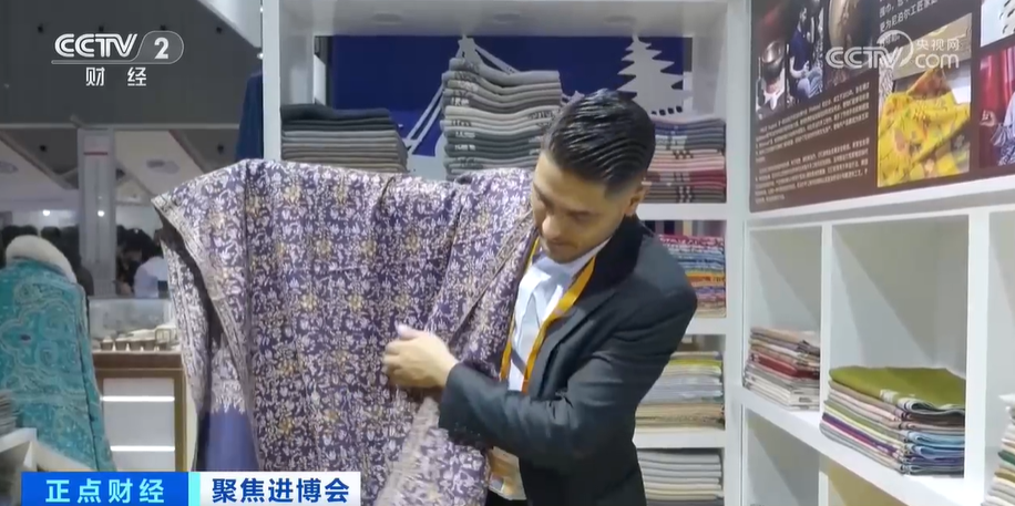 巴基斯坦的玉器、匈牙利的陶瓷、尼泊尔的羊绒,外国客商齐聚于此,将各自国家的特色好物在此首发、首展。弗兰克是一位尼泊尔小伙,这是他第五次参加进博会。因为进博会,他留在了中国,在上海开了门店,也将尼泊尔手工制作的羊绒围巾带到了中国市场。