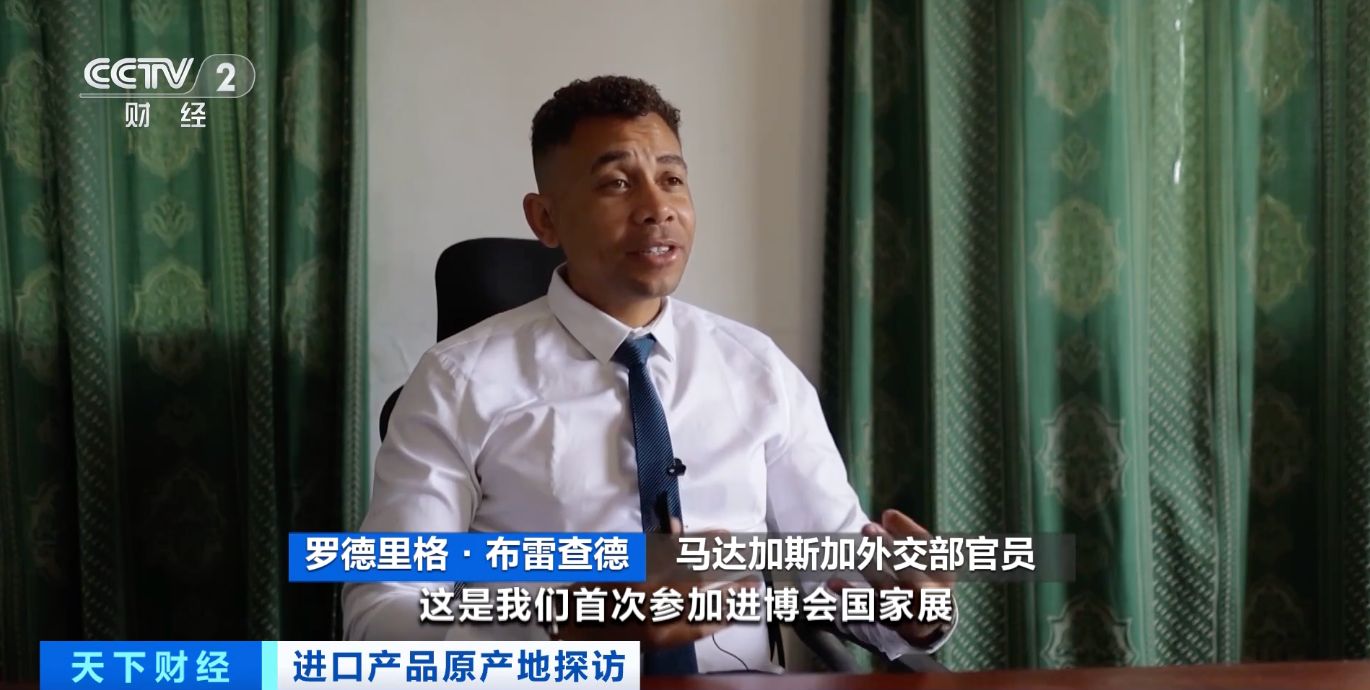 马达加斯加外交部官员罗德里格·布雷查德:这是我们首次参加进博会国家展,中国市场空间广阔,马中两国关系良好,我们希望到中国开拓市场。