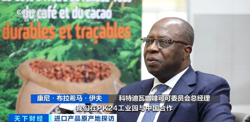 科特迪瓦咖啡可可委员会总经理康尼·布拉希马·伊夫:我们在PK24工业园与中国合作,建设了科特迪瓦规模最大的国有可可仓储区和加工厂,希望提高可可加工能力,增加可可产业的附加值,实现产业转型。