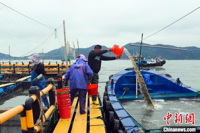 在饲养鱼苗的饵料上,郑顺利也有“秘方”,使用自行研制的配合饲料,与大型厂家合作定制,可根据大黄鱼生长的全周期进行调配。他说,就好像“配方奶”,让大黄鱼存活率提高的同时,品质更加优越。