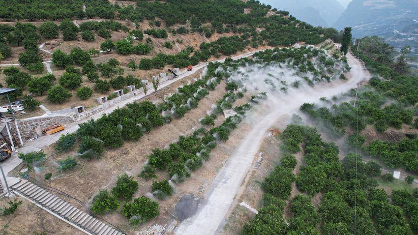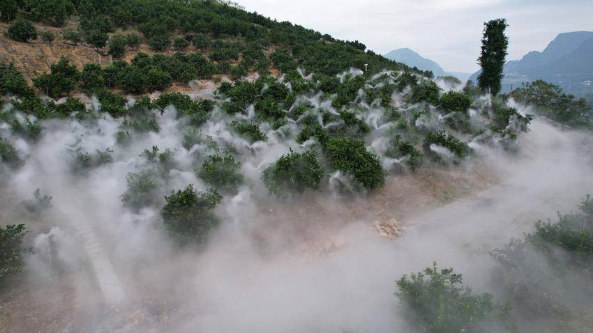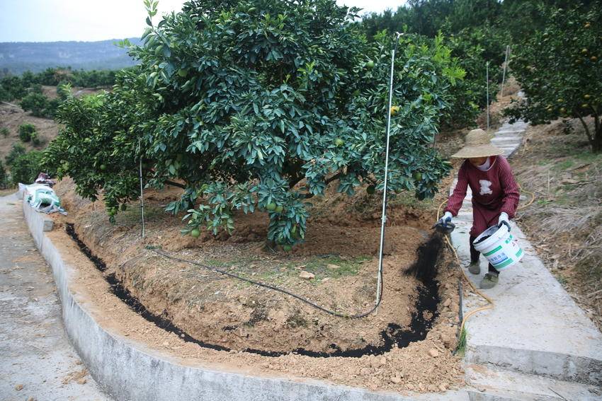 11月9日,恩施州巴东县远旺种植基地负责人陈远军打开水肥一体化喷灌系统,给柑橘园喷施水肥。