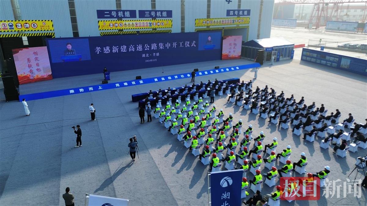 11月11日上午,湖北孝感3条新建高速集中开工在硚孝高速西延线项目综合场站举行。