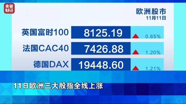 欧洲方面,三大股指周一同样全线上涨,其中英国富时100指数上涨0.65%,法国CAC40指数涨幅为1.20%,德国DAX指数涨幅为1.21%。