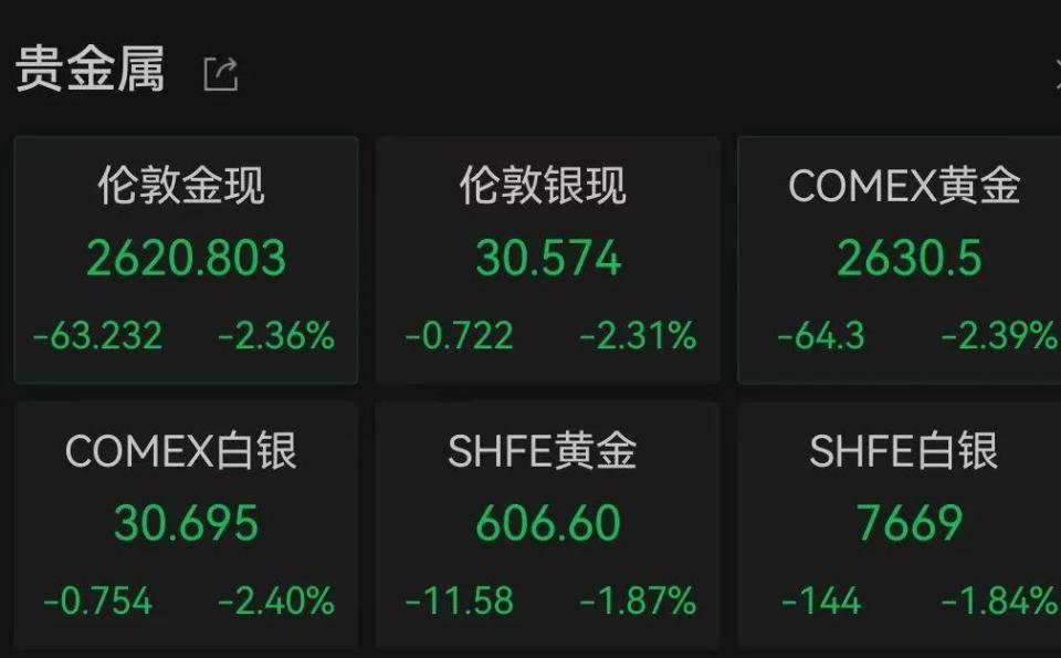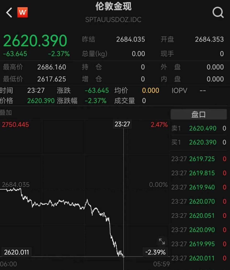 受美元持续走强等因素影响,金价周一下跌超2%,现货黄金下跌2.4%,至每盎司2617.96美元。美国黄金期货收跌2.9%,至每盎司2617.70美元。