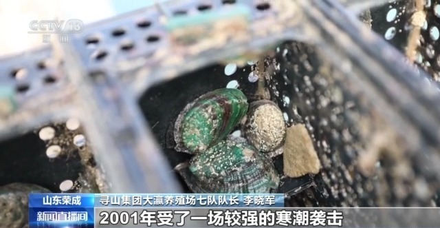 寻山集团大瀛养殖场七队队长 李晓军:2001年经历了一场较强的寒潮袭击,鲍鱼受到了很大的损失,大批冻伤,导致死亡。